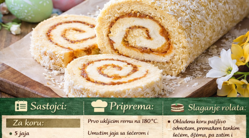 Ako želiš da napraviš nešto posebno za Uskrs, a da izgleda kao iz slastičarne – ovaj rolat je moj izbor. Ja ga pravim kad hoću da oduševim goste bez previše komplikacije. Mekana kora, bogata krema i lijep izgled – pravi praznični kolač!
