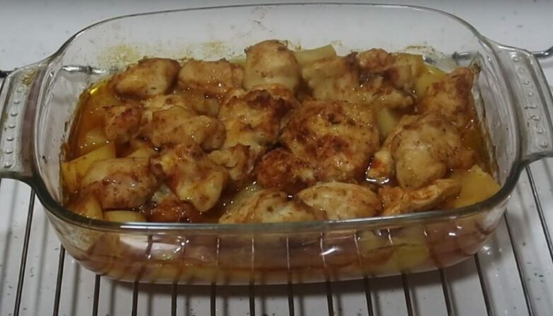 Krompir i meso iseckajte na sitne komadiće. Stavite u vatrostalnu činiju i promešajte. Začinite, dodajte ulje i pecite oko 20 minuta na 200 stepeni Celzijusa.