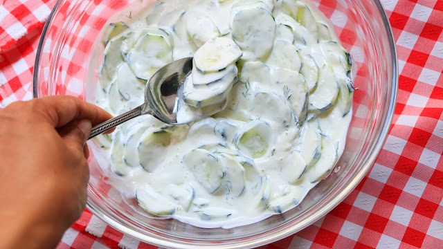 Salata koju stalno pravim i svi samo nju hvale. Mana joj je otvara apetit. Kremasta krastavac salata