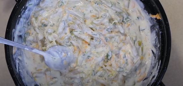 Izmešajte pavlaku, majonez, izrendan beli luk, iseckanu mirođiju i peršun, limunov sok pa prelijte preko boranije u koju ste narendali kuvanu šargarepu. Sve promešajte i ostavite da se prohladi do posluženja. Prijatno.