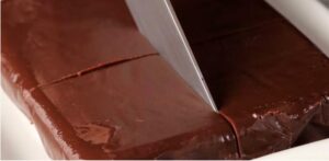 Zatim sipajte kakao prah po stolu i stavite kolač preko. Isecite kocke, pa preko njih opet pospite kakao prah. Rukama ih još malo oblikujte, stavite na tacnu i pospite sa još malo kakao praha.
