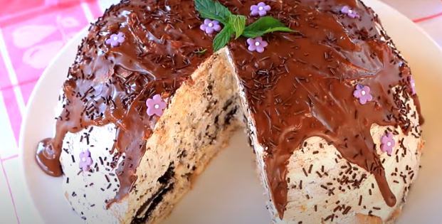 Izmrvite 150 gr. petit keksa i jednu kutiju oreo keksa. Umutite slatku pavlaku sa šećerom i kiselom pavlakom pa umešajte mrvljeni keks.