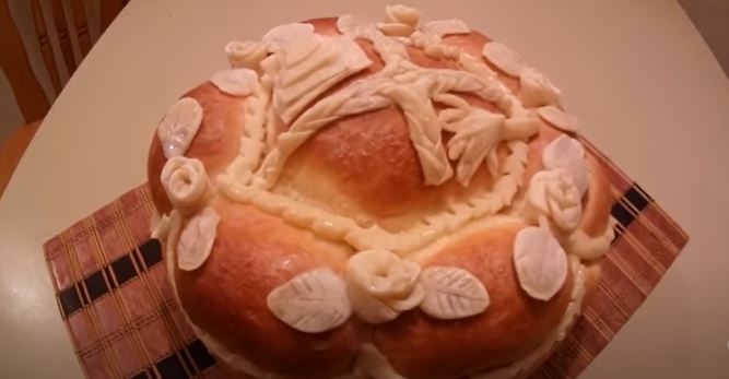 Slavski kolač sa belim ornamentima