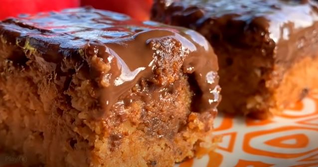 Socan griz kolac sa jabukama i orasıma, preliven divnim cokoladnim prelivom
