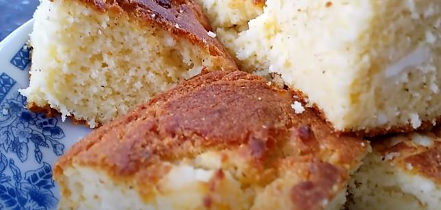Priprema: U činiju sipati projno brašno dodati griz i prašak zapecivo i izmešati dodati k. mleko, malo rastvorenog kvasca u malo mlake vode, sir namrviti na krupno, jaja, ulj i so pa zamesiti redje testo i sipati u tepsiju koju ste obložili peh papirom. Peći na 200 stepeni C oko 30 min. da lepo porumeni.