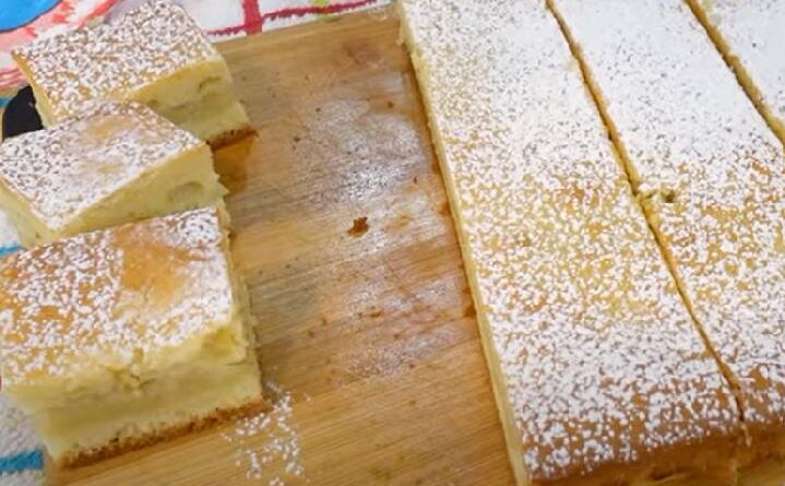 U pleh dimenzije 30×20 cm sipati prvu polovinu smese i peći u rerni na 180°C (360°F) 5-6 minuta