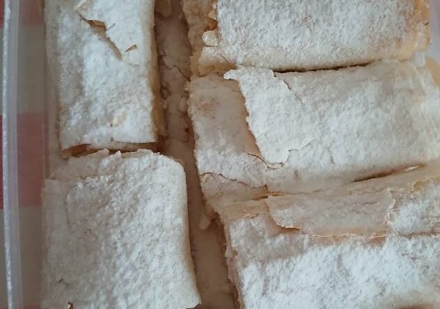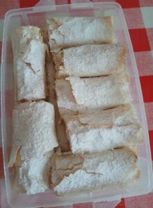 Kada se ohlade, pospem ih šećerom u prahu i režem na komade.