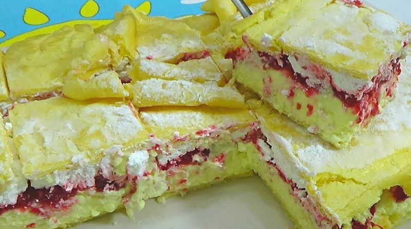 Ređati: korica, vanil krem, voćni krem, slatka pavlaka, korica pa odozgo posipati šećer u prah.