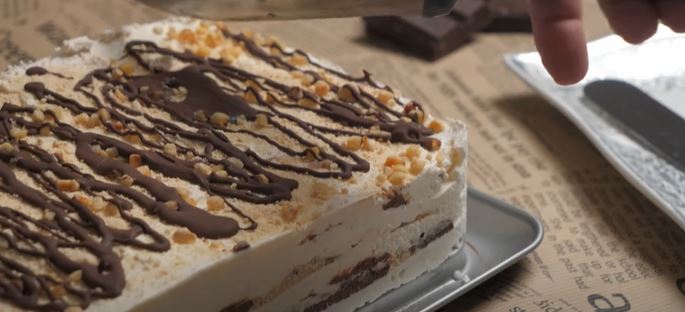 Ostaviti da se odhladi, neka 3h u zamrzivaču je dovoljno, preko noći će se potpuno stegnuti, ali onda ga ostavite 15 minuta da odstoji i secite i služite.