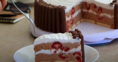 Kada se kora od prve mjese zapekla, izvaditi je iz rerne i preko poredati oko 450g višanja i preliti drugim dijelom smjese te vratiti u pečnicu i peći još 30 minuta na 200 stepeni.