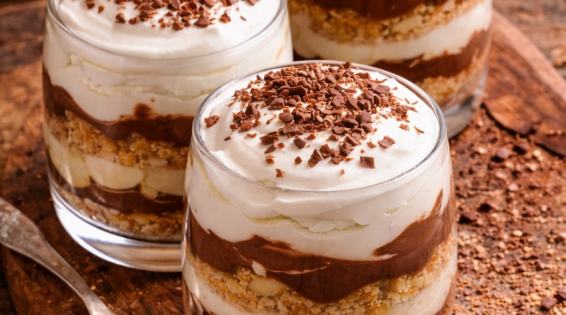 Na vrh narendam malo čokolade ili dodam mrvice keksa. Desert je spreman odmah, ali ako imate vremena, stavite ga 10 minuta u frižider – biće još ukusniji.
