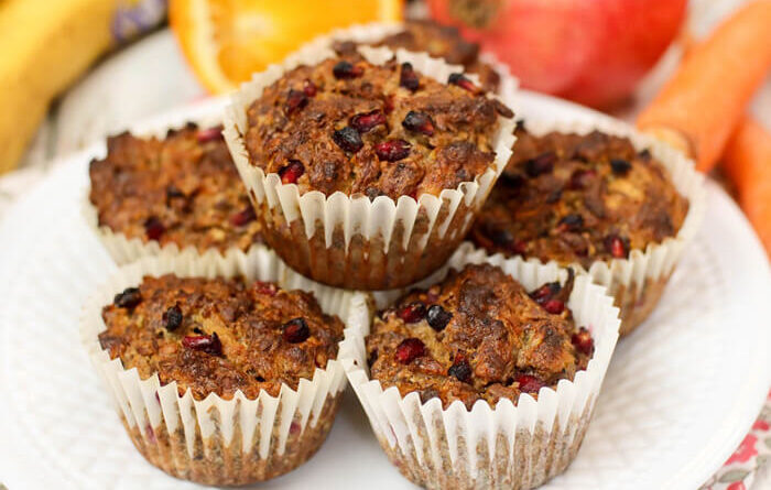 Izgnječite banane pa im dodajte jaja. Ovsene pahuljice, orahe i laneno seme usitnite u secku pa dodajte u banane i jaja. Narendajte jednu bananu i jabuku pa dodajte u smesu. Mafine začinite sa malo cimeta i djumbira a dodahte i prstohvat soli kao i praša za pecivo. Dodajte oko 6 kašika nara pa sve dobro promešajte.