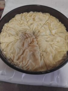 Nastavim tako dok ne potrošim sve kore i fil, a zadnju koru premažem uljem.