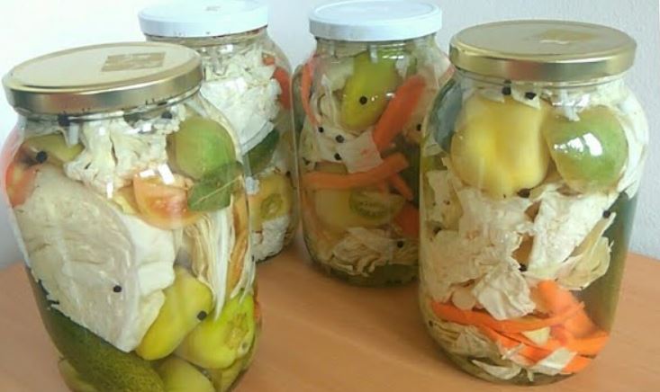 Priprema: Poredati povrće u tegle ili kantu i zaliti pripremljenom vodom.Tegle napunimo do vrha vodom i zatvorimo.